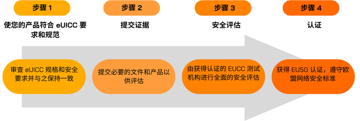 用于eUICCs认证的EU5G应接受EUCC评估。因此,认证流程步骤如下: